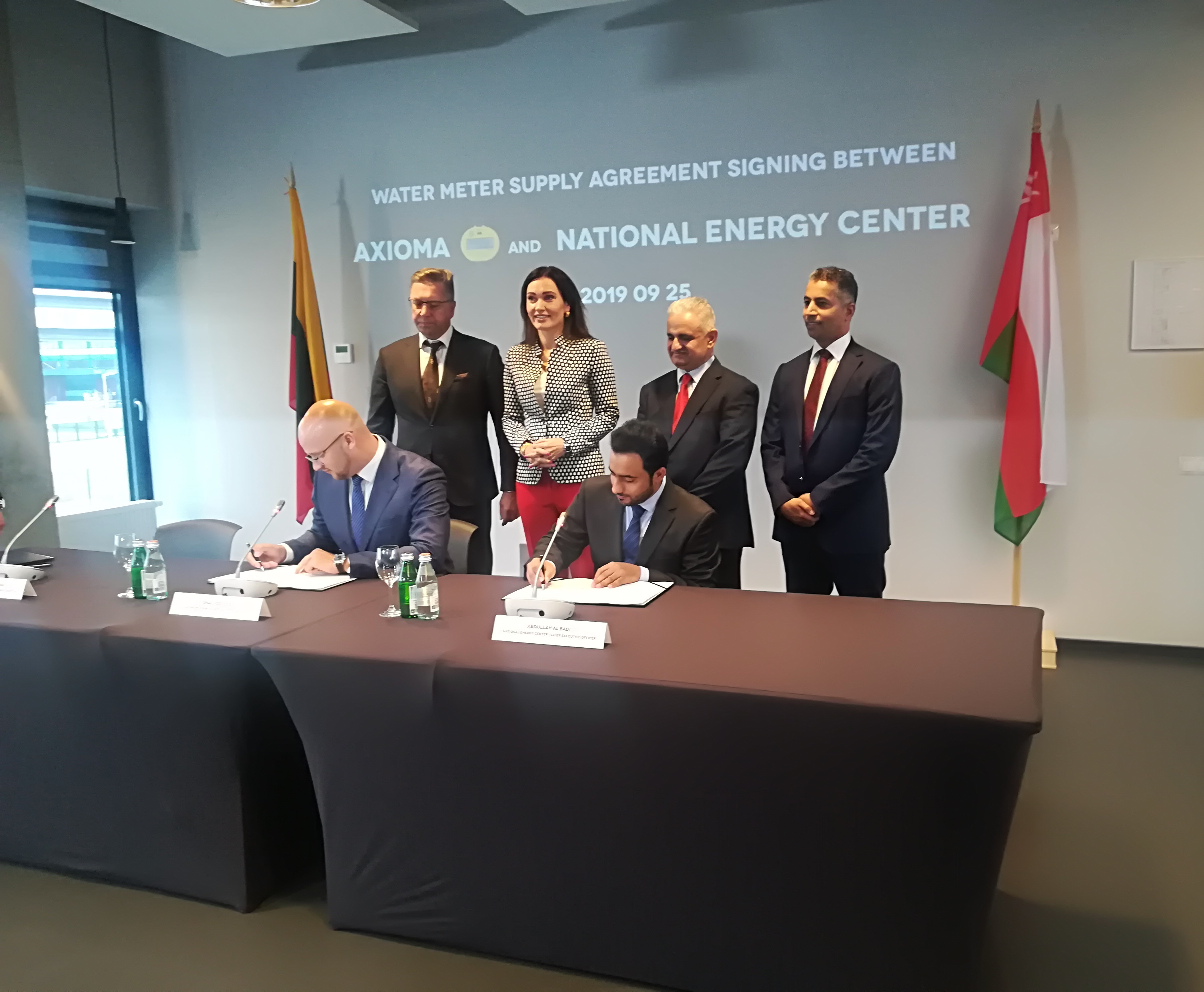 „Axioma Metering“ ne tik tieks ultragarsinius skaitiklius, bet ir atliks galimybių studiją pastatyti gamyklą ir pradėti skaitiklių gamybą Omane. Tai numatyta savitarpio supratimo memorandume, kurį šiandien su „Axioma Metering“ pasirašė į Lietuvą atvykusi delegacija. Ją sudaro pusiau valstybinės Omano Sultonato įmonės „National Energy Center“ (NEC) vadovai, ieškantys galimybės perkelti skaitiklių gamybą į Omaną.