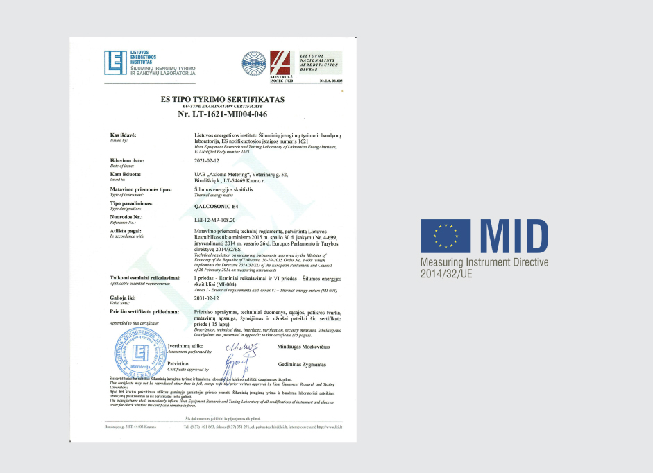 „Axioma“ pradeda masinę naujausio ultragarsinio šilumos skaitiklio „Qalcosonic E4“ gamybą su kompozitine srauto dalimi. Gautas MID sertifikatas patvirtina, kad šie skaitikliai atitinka aukščiausius metrologinius standartus. Taigi, jie yra pilnai paruošti komerciniam naudojimui. Sertifikatą išdavė registruota Lietuvos energetikos instituto Šiluminės įrangos tyrimų ir bandymų laboratorijos įstaiga.