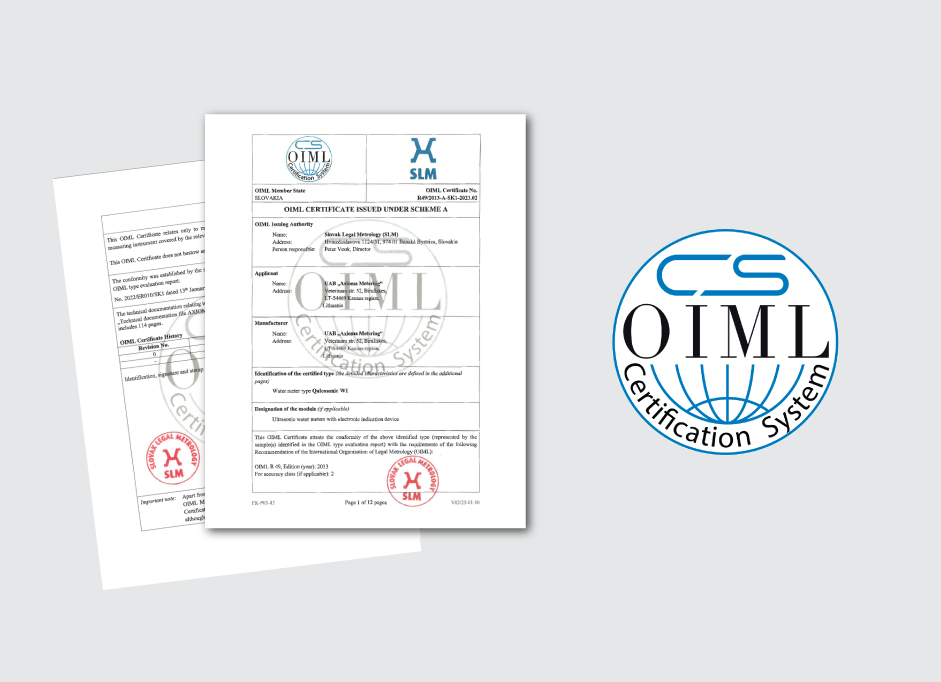 „Norėdami gauti OIML R49 sertifikatą, turėjome atlikti ilgus ir sudėtingus tyrimus akredituotoje laboratorijoje, vienoje iš OIML valstybių narių. Kaip oficialią sertifikavimo instituciją pasirinkome Slovakijos teisinės metrologijos (SLM) biurą, nes SLM labai aktyviai dalyvauja tarptautiniame bendradarbiavime pasaulinėje Tarptautinėje teisinės metrologijos organizacijoje OIML. Europos lygmeniu, SLM yra aktyvus kelių WELMEC – Europos teisinės metrologijos bendradarbiavimo darbo grupių narys. SLM taip pat yra Slovakijos Respublikos nacionalinės kokybės prizo laimėtojas. Sertifikavimo procesas truko beveik 6 mėnesius, o mūsų gaminiai turėjo išlaikyti išsamius ir nuodugnius testus. Tačiau po visko, mes labai didžiuojamės, kad mūsų gaminys sėkmingai išlaikė testus, ir tai vainiko sertifikato išdavimas“, – sako Giedrius Vaitkūnas, „Axioma Metering“ gaminio vadovas.